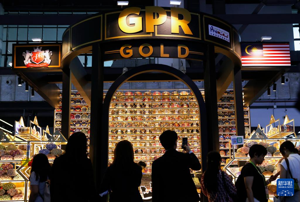4月13日,人们在第六届消博会上了解马来西亚商品。新华社记者 高静 摄