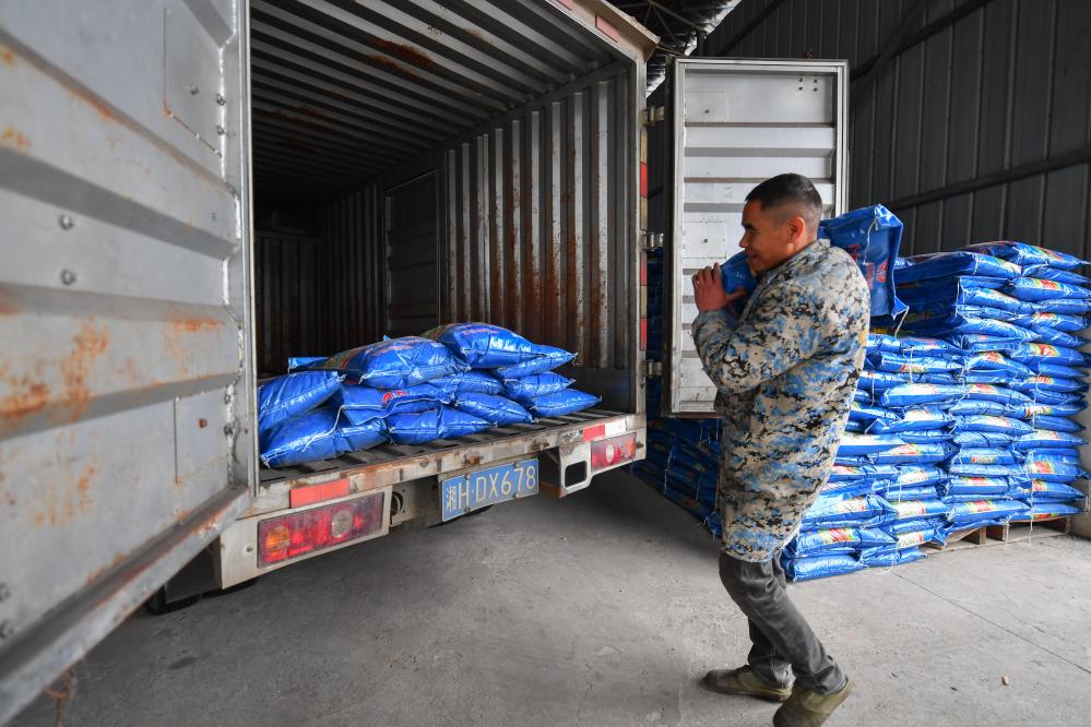 2月25日,在湖南省益阳市赫山区的农资连锁配送中心,工作人员将农资搬运上车。新华社记者陈泽国 摄 记者走访看到,不仅农业生产有新变化,乡村产业也在蓬勃发展。据了解,赫山区近年通过产业发展、稳岗就业等措施,持续增加农村人口收入。 在位于泥江口镇的益阳市湘银之舞服饰有限公司,工人们正开足马力赶订单。在智能裁缝车间里,工人将面料展开、裁剪、印刷、绣花、缝纫……一件广场舞服最快只需40秒就能制作完成。