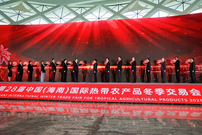 12月4日,2025年第28届中国(海南)国际热带农产品冬季交易会(简称“冬交会”)在海南国际会展中心正式开幕!恰逢海南自贸港封关运作关键节点,本届冬交会以 “聚农业精品·享自贸商机”为主题,展览面积75000平方米,共设9大展区,全球16个国家及地区的2000余家企业携万余种好物集结,2.5万名专业观众跨越山海共赴“海岛之约”,在琼岛大地上书写农业开放合作新篇章。 本届冬交会的主宾国是泰国和巴基斯坦,主宾省是四川。 首日逛展热潮涌,万种好物目不暇 开幕首日,现场迎来客流高峰,各展台展品琳琅满目、新意十足。首发首秀展区,“芋香福宝”迷你香芋冬瓜、粉果番茄、卡特兰、拟堇兰、琼薯1号、天涯海角100%椰子水、白可可、大疆农业无人机T100S等24种新产品首次亮相,联名产品也凭借创新包装与跨界联合吸引大批观众驻足;产业链展区,国产榴莲、海南芒果、蜜瓜等热带水果散发着浓郁热带风情;农业科技展区,智慧农业大数据平台等设备惊艳亮相,无人机精准播种、施肥、植保全流程作业,大数据实时监测平台,直观展现科技赋能农业的强劲动力。海南各市县展区更是尽显地域特色,五指山融合“通什1988”文化旅游概念打造农品创新平台;儋州深度彰显儋洋一体化招商成果,展示海南自贸港“样板间”金字招牌;乐东深化“富域乐东”品牌核心定位,打造“一场轻快的乐东风物之旅”......各市县通过差异化展品,传递“一县一业”的农业发展活力,让观众感受海南农业的多元魅力。全国各省市团组展区同样亮点纷呈,主宾省四川以“天府粮仓·味润琼州”为主题,聚焦四川千亿级优势特色农业产业,全方位呈现以茶叶、粮油、特色果蔬为核心的“川字号”优势产业与精品农产品。沁县小米、隰县玉露香梨、山西陈醋等特色农产品也将全数亮相。